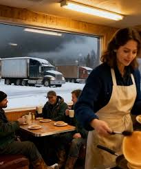 The first night felt like a little miracle in the middle of the storm. Those truckers — rough hands, road-tired eyes — suddenly looked like boys again warming up after a long winter walk. They shared stories about families waiting back home, joked about their coffee habits, and passed around photos of pets and grandbabies. I kept cooking until the grill steamed the windows, my tiny diner glowing like a pocket of summer in a frozen world. Outside, snow swallowed the sky, but inside, it felt safe, human, warm.